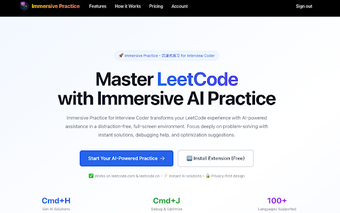 면접 코더를 위한 몰입형 연습은 AI 기반 지원을 통해 코딩 면접 준비를 향상시키기 위해 설계된 무료 Chrome 추가 기능입니다. 이 도구는 사용자가 알고리즘 문제를 해결할 때 지능적인 솔루션과 지침을 제공하며 LeetCode 문제에 대한 실시간 도움을 제공합니다. 여러 프로그래밍 언어를 지원하며 LeetCode 플랫폼과 원활하게 통합되어 사용자의 중단 없는 작업 흐름을 보장합니다.